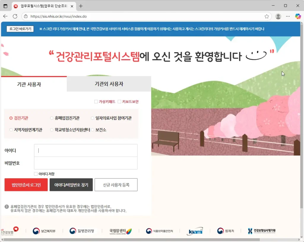 건강검진시스템 업무포털 홈페이지 바로가기 (https://sis.nhis.or.kr)